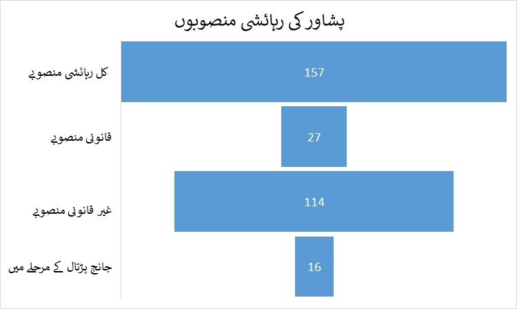 معلومات کے مطابق لیبکا صوبے بھر میں رہائشی اور کمرشل منصوبوں کا ڈیٹا جمع کر رہی ہے، جس کے مطابق ضلع پشاور میں 157 رہائشی منصوبے موجود ہیں، جن میں سے صرف 27 قانونی، 114 غیر قانونی جبکہ 16 کی جانچ پڑتال جاری ہے۔ قانونی طور پر رہائشی و کمرشل منصوبوں کے اجازت نامے جاری کرنے کا اختیار لیبکا کے پاس ہے، تاہم ماضی کا ریکارڈ اکٹھا کرنا ایک پیچیدہ مرحلہ ثابت ہو رہا ہے۔