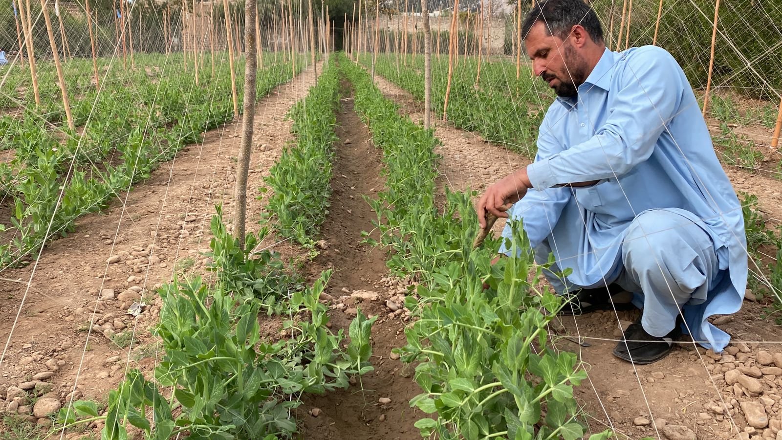 پشاور رنگ روڈ سفید ڈھیری کے 40 سالہ جاوید علی کے پاس کاشتکاری کے لیے 30 ایکڑ کے بجائے اب صرف ایک ایکڑ زرعی زمین باقی رہ گئی ہے۔ رقبے میں کمی کے باعث وہ ٹنل فارمنگ کے ذریعے غیر موسمی سبزیاں اگا رہے ہیں تاکہ زیادہ سے زیادہ آمدن حاصل کر سکیں۔ اس وقت انہوں نے کھیرا، مٹر اور لہسن کاشت کیا ہوا ہے۔